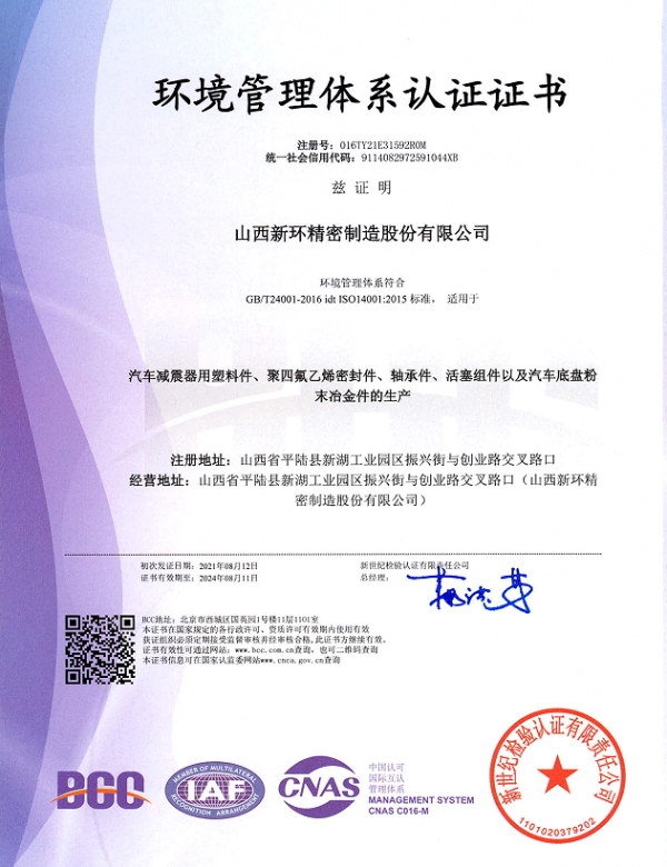 山西新環(huán)精密制造股份有限公司創(chuàng)建于1992年,是以研發(fā)、生產(chǎn)、銷售粉末冶金類、工程塑料類、橡膠制品類、氟塑類產(chǎn)品為主的高新技術(shù)企業(yè)。位于交通發(fā)達(dá)的山西省平陸縣城,距離三門峽市6 km,毗鄰隴海線,高鐵直達(dá)北京、上海、成都均為5小時(shí)左右,到達(dá)鄭州、西安皆為1小時(shí),距離運(yùn)城市機(jī)場35km。旗下子公司有:山西新環(huán)粉末冶金有限公司、山西新環(huán)科技有限公司、寧波新環(huán)氟塑料制品有限公司、寧波新環(huán)氟塑料制品有限公司軸業(yè)分公司、新勝達(dá)氟塑制品有限公司。現(xiàn)有高、精、尖設(shè)備120余臺套,固定資產(chǎn)總額1.8億元,年銷售額2.6億元。